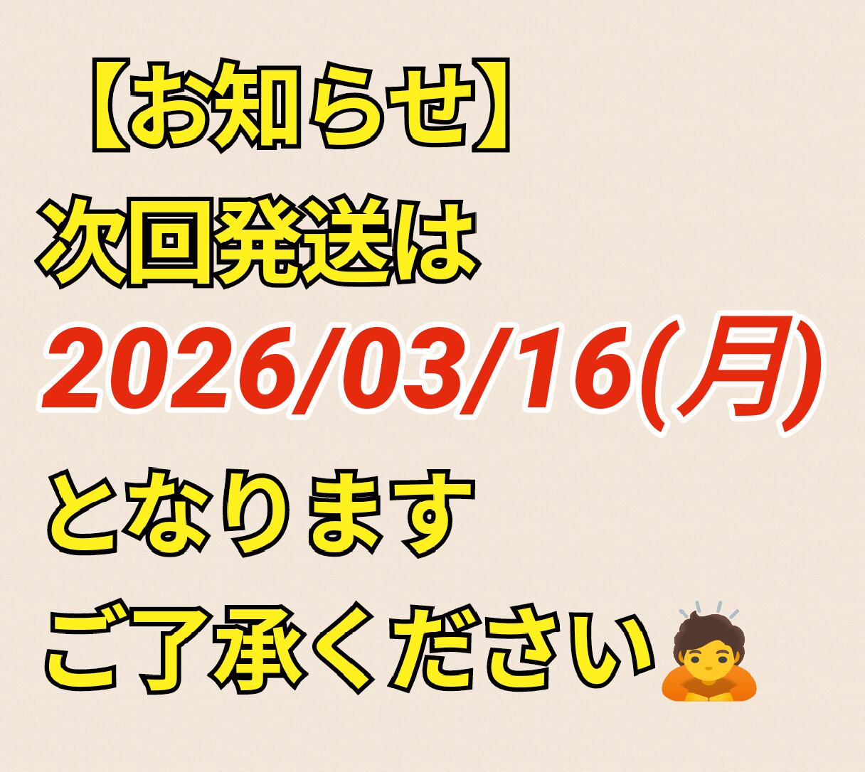 都合により次回発送は2026/03/16以降となります。発送までお時間いただく場合がありますがご了承ください