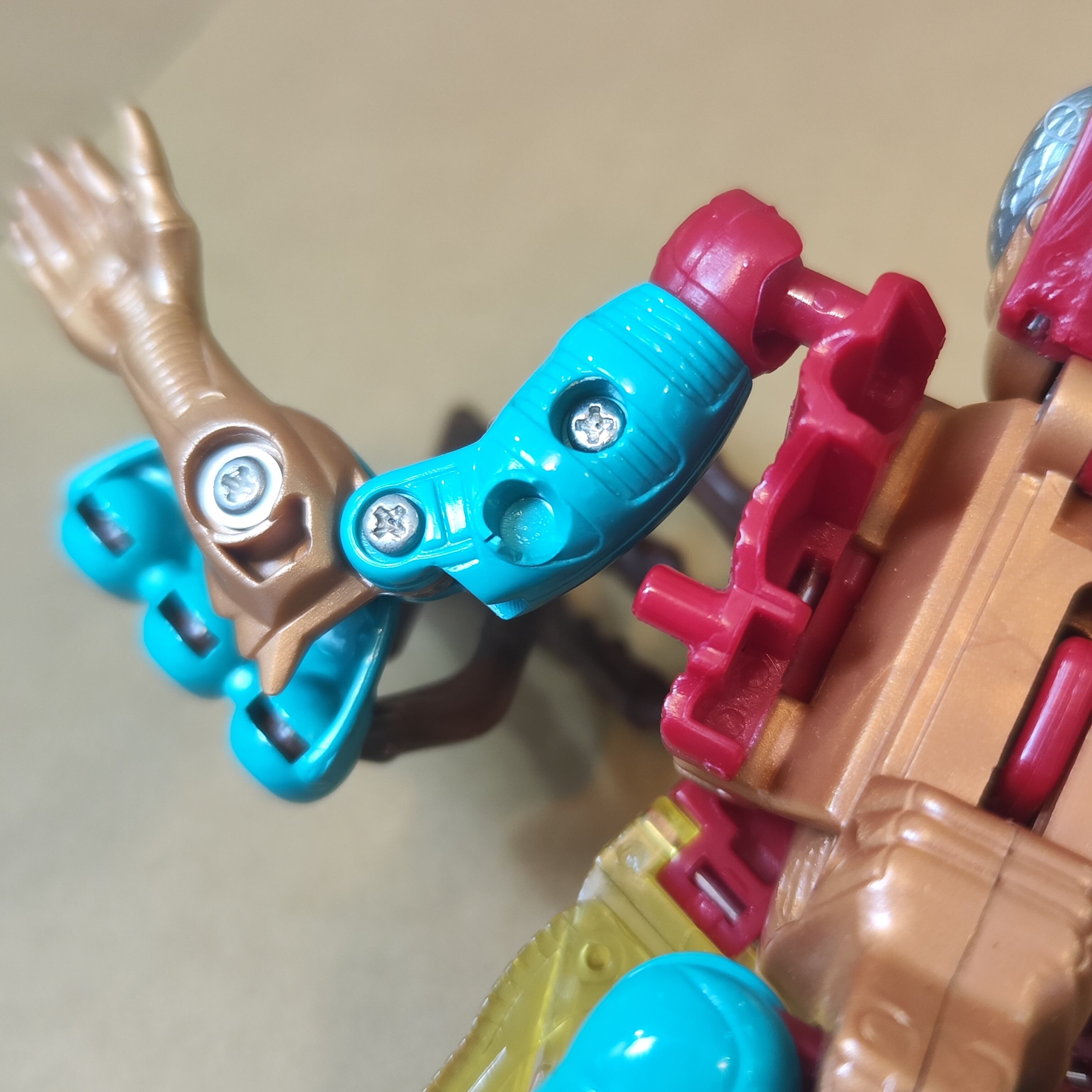腕と胴体をつなげるピン受けが破損しています